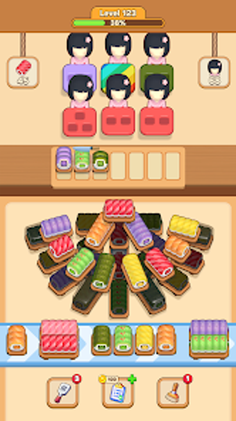 Sushi Puzzle: Sorting Game é um jogo de quebra-cabeça envolvente para Android que desafia os jogadores a organizar diferentes tipos de sushi em bandejas coloridas. Com um conceito simples, o objetivo é classificar os sushis nas bandejas correspondentes, mas a tarefa se complica à medida que o jogo avança e mais tipos de sushi são introduzidos. A limitação de espaço adiciona uma camada de estratégia, tornando cada movimento crucial para o sucesso.